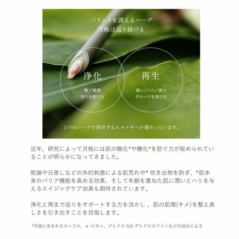 月桃の清々しい香りは、乾燥による肌荒れだけでなく、PMSや更年期の不安定な気分をそっと落ち着かせてくれます。朝晩のケアが、自分を慈しむリラックスタイムに変わります。