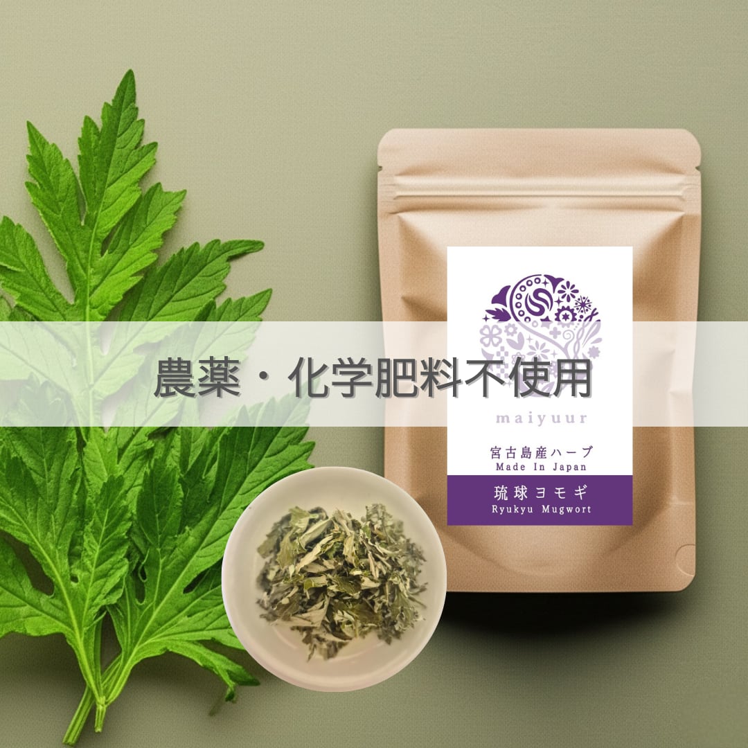 【注意事項】琉球よもぎはキク科です。キク科アレルギーの方はご使用をお控えください。体調に異常を感じた場合は使用を中止し、医師に相談してください。お体に合わない場合は使用を避けてください。