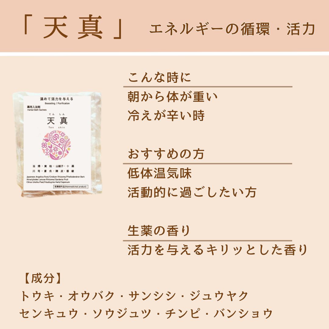 温める力に優れた生薬を中心に配合。体を芯から温め、滞りがちなリズムを整えたい時に。活力を与えてくれるような、健やかな香りです。